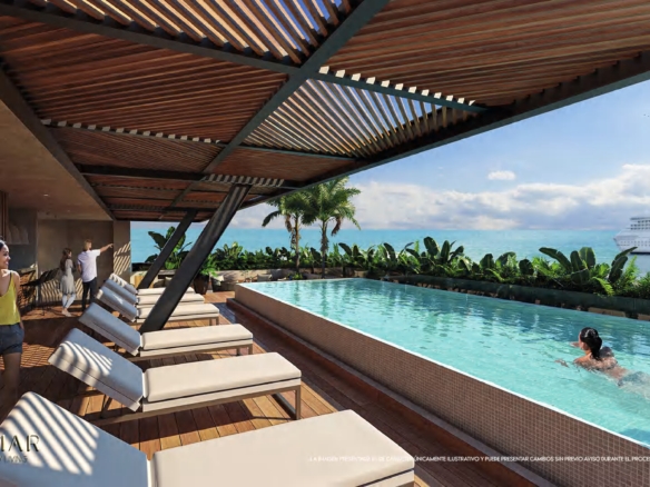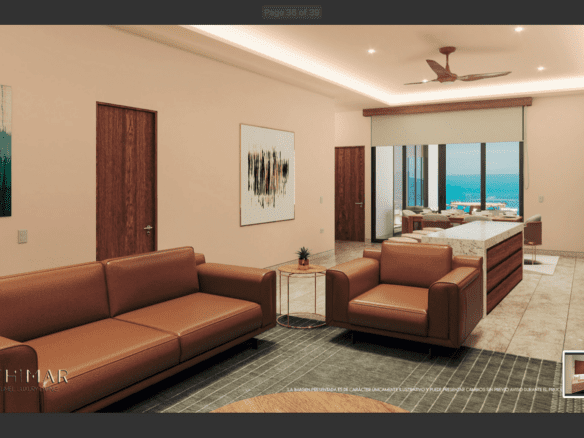 Queda un condominio con vista al mar #16 en el 3er nivel con 2 recamaras 101.57 m2 interior, 8.35 m2 terraza $7,491,340 Mxn Pesos (Aprox. $440,000 USD) para 80% abajo y 20% al cierre. (Hay otras opciones de pago disponibles: 30-40-40 o 50-30-20.